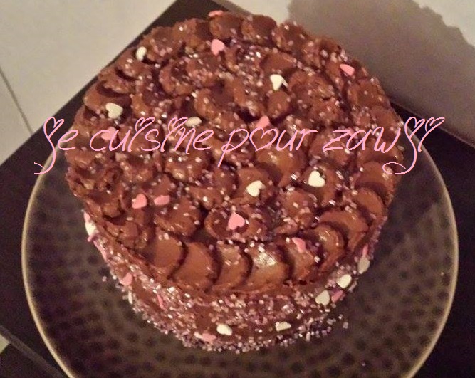 - A l'aide d'une spatule recouvrir d'une fine couche de ganache votre gâteau , soyez délicate surtout pour pas abîmer votre beau gâteau