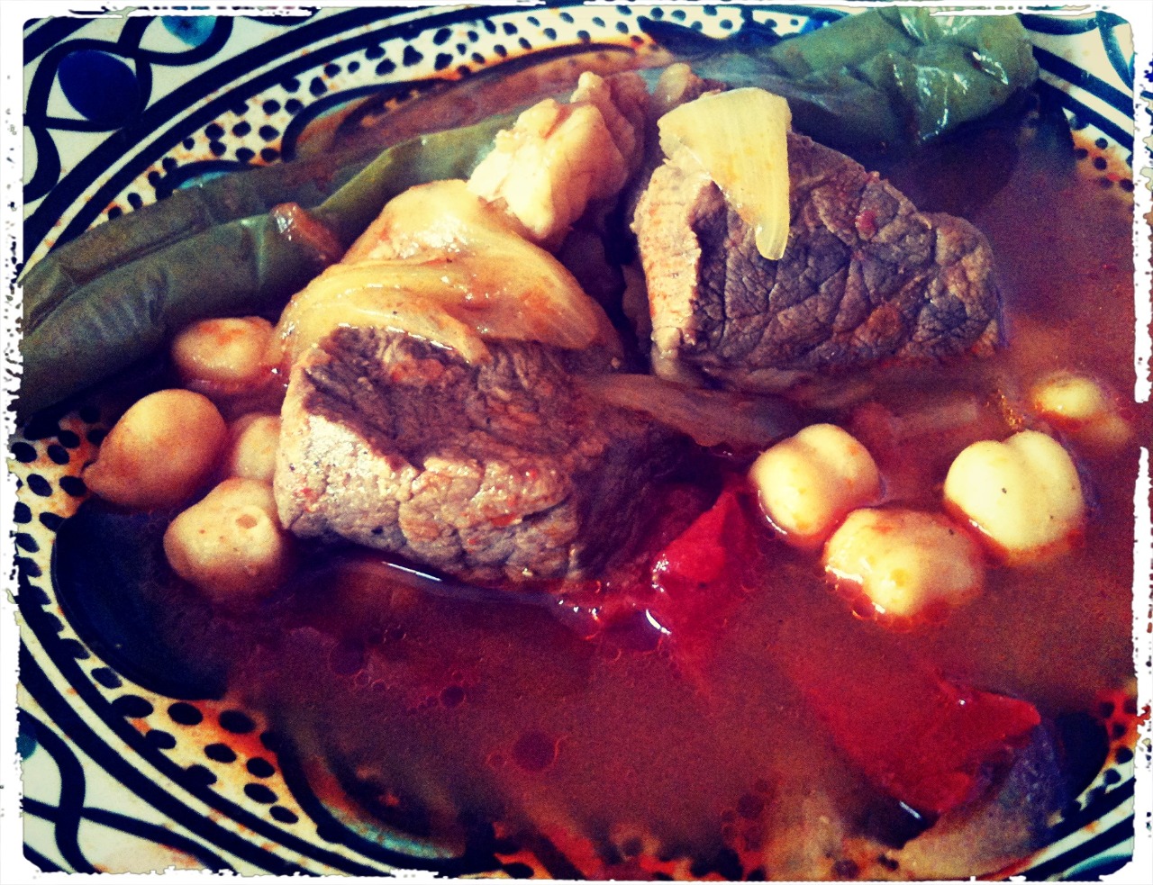 ensuite ajouter le a la viande continuer a faire revenir ensuite couvez d’eau et ajouter les pois chiche et laisser cuire